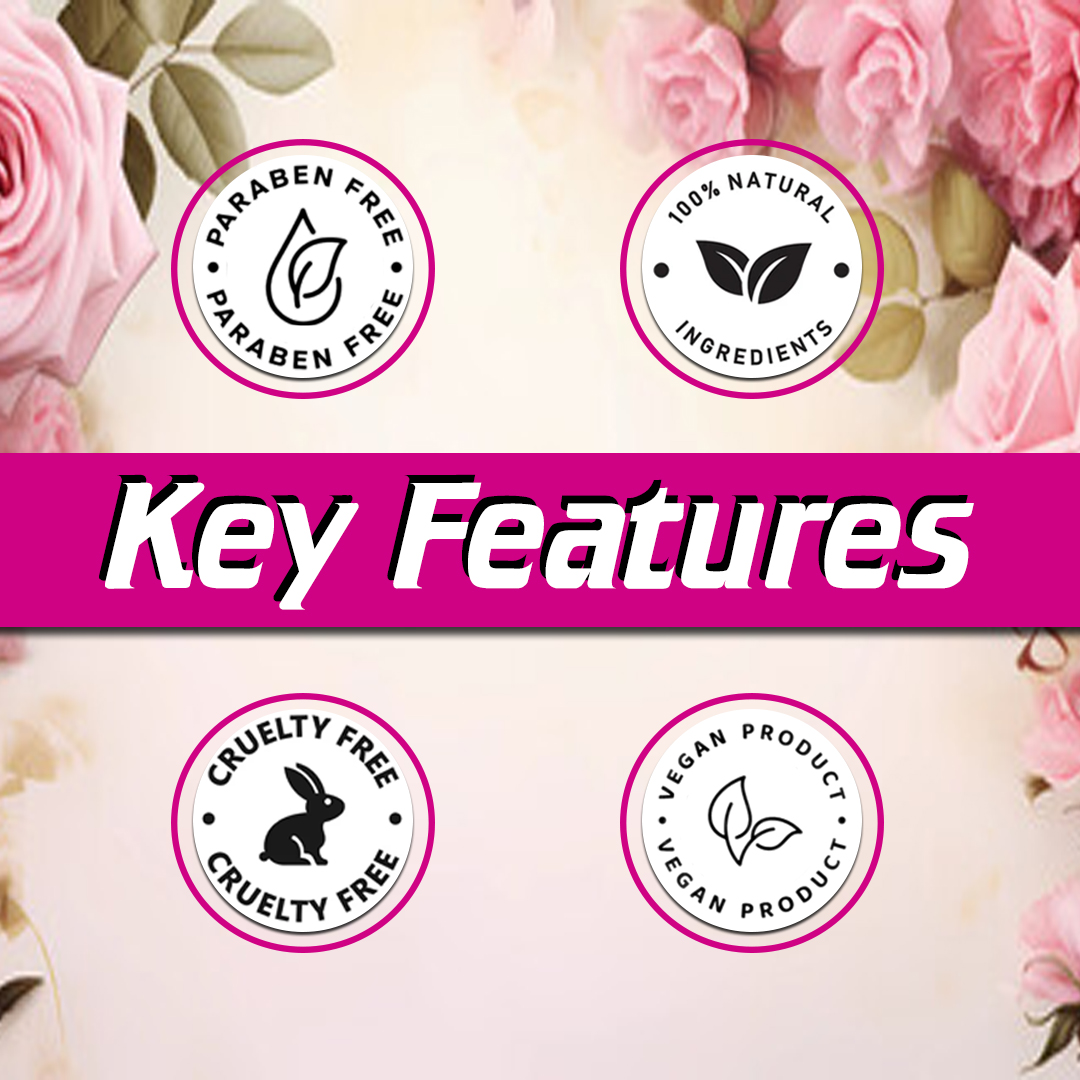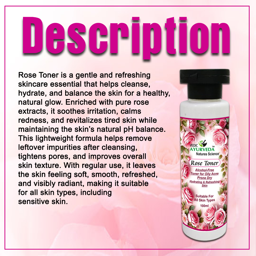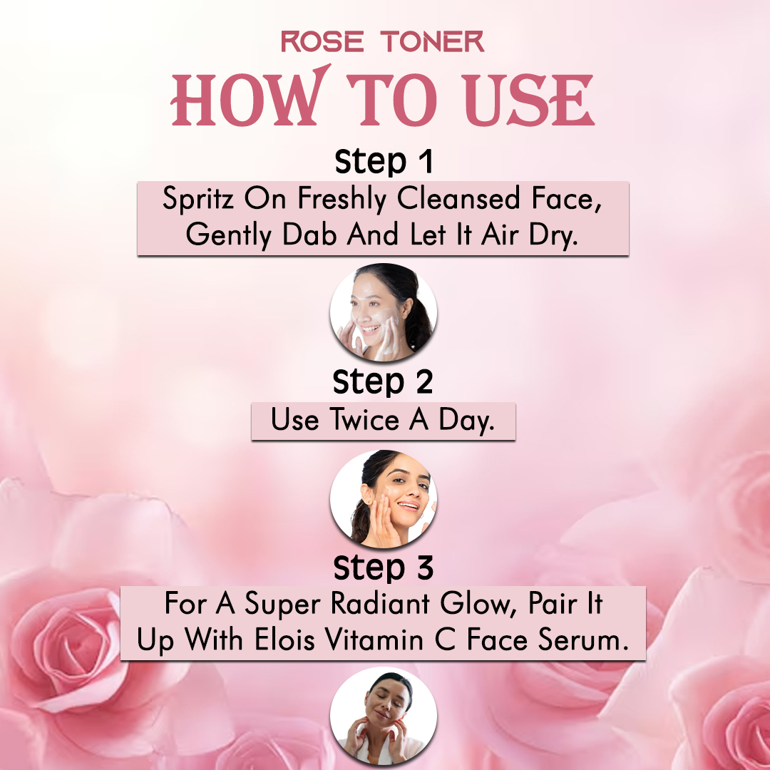 Rose toner instantly refreshes and revitalizes the skin, leaving it feeling clean and fresh.
