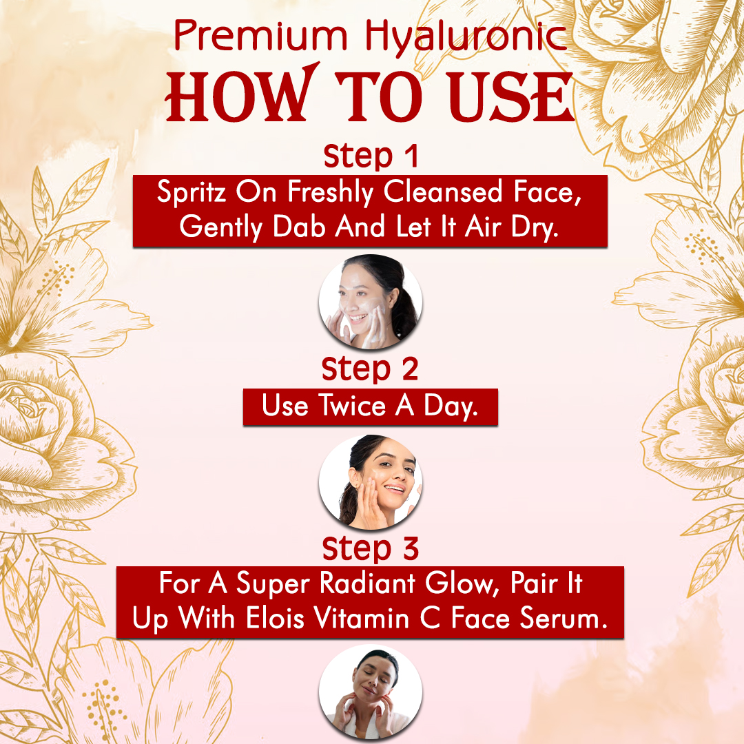 Hyaluronic acid attracts and locks moisture into the skin, keeping it hydrated, plump, and smooth.