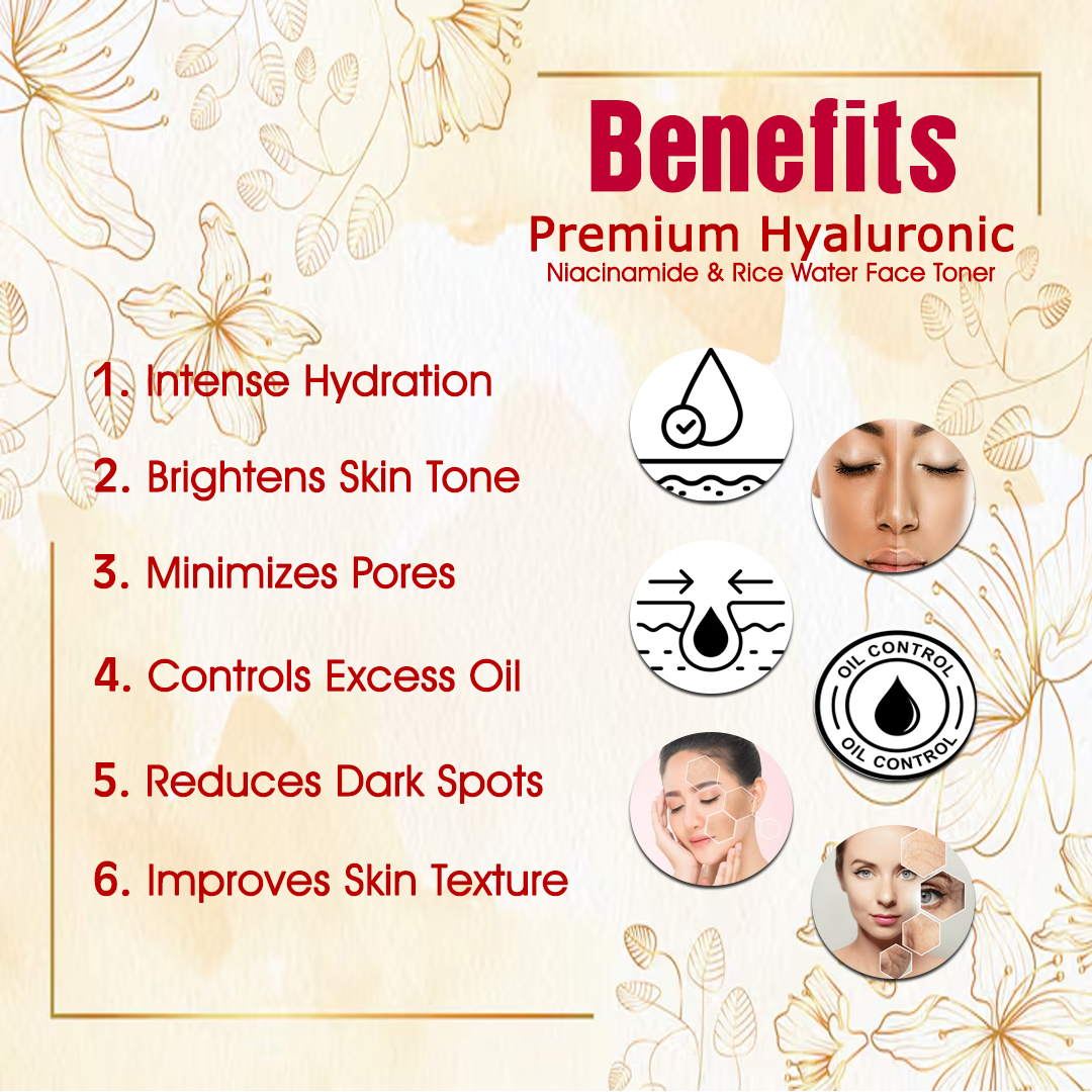 Premium Hyaluronic Niacinamide & Rice Water Face TonerBenefits