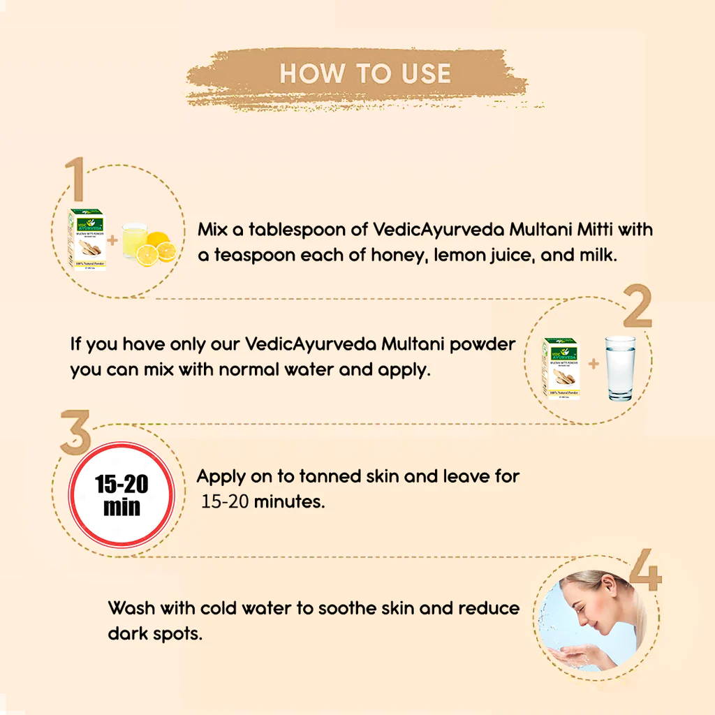 2. If you have only our VedicAyurveda Multani powder you can mix it with normal water and apply.
