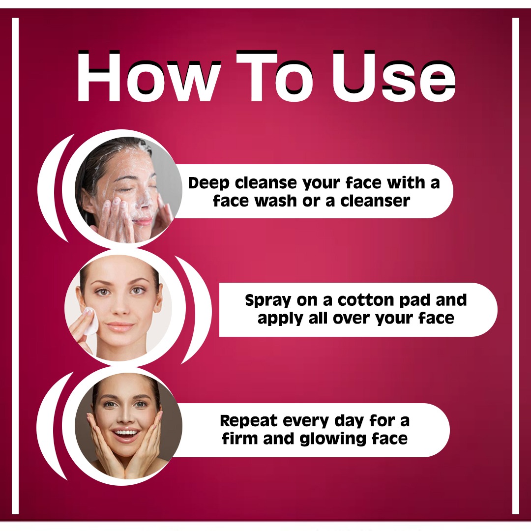 Step 2 :- Spray on a cotton pad and apply all over your face.