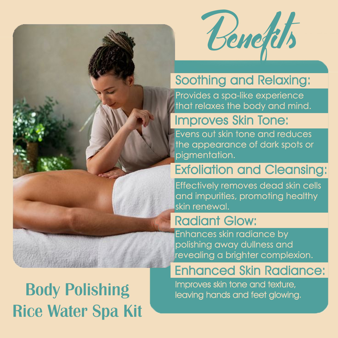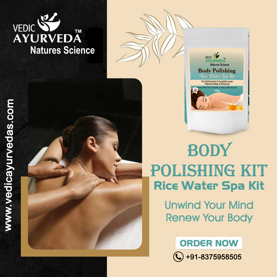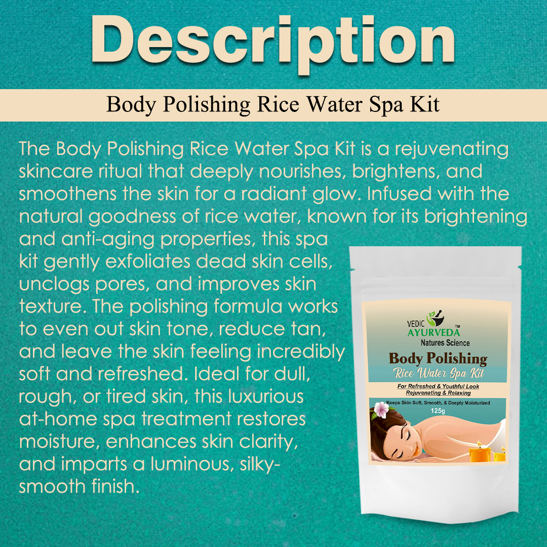 Transform your skincare routine with VEDICAYURVEDA’s Body Polishing Rice Water Spa Kit, a luxurious 125g treatment designed for complete body rejuvenation. This comprehensive spa kit helps achieve soft, smooth, and deeply moisturised skin while promoting a refreshed and youthful appearance. Perfect for both women and men, this body polishing treatment offers professional-quality spa results from the comfort of your home. The carefully curated formula works to enhance skin tone and texture, providing deep moisturisation for lasting suppleness. The kit includes everything needed for a relaxing and rejuvenating spa experience, making it an ideal choice for those seeking to pamper themselves with a premium body care ritual. Regular use helps maintain skin’s natural radiance and smoothness. For best results, follow the included usage instructions carefully. Suitable for all skin types, this body polishing kit brings the luxury of a professional spa treatment to your daily skincare routine.
