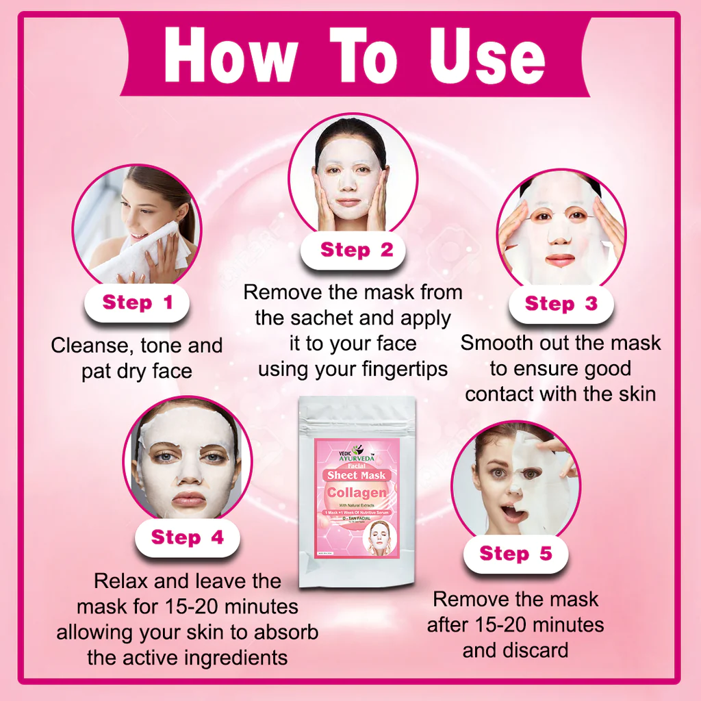 Premium Quality Ingredients: We believe in the power of nature to transform your skin. That’s why our collagen mask sheet is formulated with only the finest natural ingredients, free from harsh chemicals, parabens, and sulfates. From nourishing plant extracts to skin-loving vitamins, every ingredient is carefully selected to deliver maximum results without irritation.